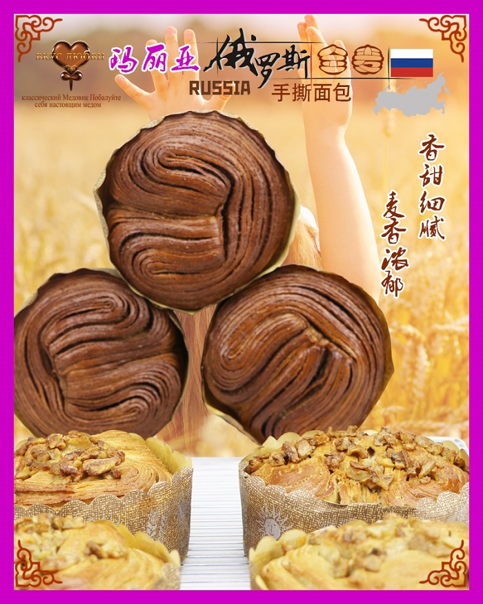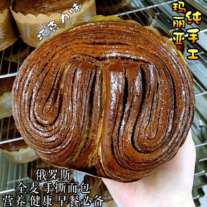 mapuя瑪麗亞俄羅斯全麥?zhǔn)炙好姘x俄羅斯優(yōu)質(zhì)高筋度小麥粉、俄羅斯天然蜂蜜、優(yōu)質(zhì)雞蛋、黃油和鮮奶等新鮮食材,聘請(qǐng)俄羅斯資深烘焙專家,采用俄羅斯古老配方加上精致的工藝,使面包達(dá)到層次分明的效果,低溫發(fā)酵,烘烤出色澤誘人、香飄四溢,松軟爽口,千層美味的純正俄羅斯風(fēng)味手撕面包!